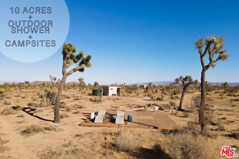 Absolutely magical property with spectacular stargazing and mesmerizing views of the San Gorgonio Mountains. This very private 10-acre lot comes with a paid water meter, percolation test, house plans, and survey, with potential options to subdivide in the heart of the beautiful Yucca Mesa. The property currently has an outdoor shower, sink, platform, shed, water tank, and an 8 x 40-foot container. There are five inactive "campsites" on the property, and the ownership has begun the process of applying for a conditional use campground permit. Extremely high-demand rental area with consistent returning visitors, many stated it was their most memorable experience in the high desert. Conveniently located just 3 miles from Mesa Mart, 10 miles to Joshua Tree National Park / The Joshua Tree Saloon, and 13 miles to Pappy & Harriet's. House plans, survey, percolation test, container, chairs, and personal items on-site are included in the sale! Don't miss this incredible opportunity! This property is absolutely spectacular. Please do not go on-site without contacting the listing agent first. A full plan set, percolation report, and survey are available upon request!