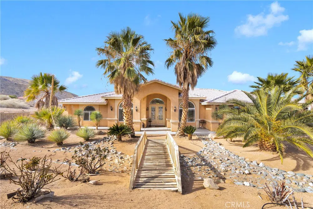 Phenomenal Home with Stunning Upgrades and Breathtaking Views! Welcome to this spectacular home, perched on a FULLY FENCED lot that offers panoramic views of the entire valley and the majestic desert mountains! This is the perfect blend of privacy, space, and luxury living. Featuring a split floor plan, this home boasts two spacious master suites, making it ideal for large families or guests. The formal dining and living rooms set the stage for elegant entertaining, while the open-concept living space with soaring 18-ft ceilings creates an airy, light-filled atmosphere. A beautiful marble fireplace adds warmth and style to the heart of the home, complemented by a chef’s kitchen that is truly a dream! The kitchen showcases immaculate granite countertops, a walk-in pantry, and an abundance of cabinet space. It seamlessly flows into a cozy breakfast nook, where you can enjoy your morning coffee with incredible views. Step through the doors to your approximately 1500 sq. ft. patio—the perfect space to relax and take in the sweeping views of the valley and beyond. In addition to the two master suites, the home offers two more generously-sized bedrooms and a dedicated office space—ideal for those working from home. The laundry room is oversized, with ample storage to keep everything neat and organized. The primary bedroom bathroom has been fully remodeled, featuring a stunning tile shower, dual vanities, and modern finishes that create a spa-like retreat. Throughout the home, you’ll find newer flooring in many areas, adding a fresh, updated feel throughout. As if the interior weren’t enough, this home is set on a huge lot just off the pavement on a quiet, tranquil road on the outskirts of town. The property boasts beautiful, drought-resistant landscaping, with soaring palm trees that create an oasis-like atmosphere. The oversized garage and extended driveway provide ample space for your vehicles, boats, and RV, making this a true dream for outdoor enthusiasts. This home truly has it all—comfort, style, space, and stunning views. It’s a must-see for anyone seeking a home that combines luxury and practicality in a perfect location.